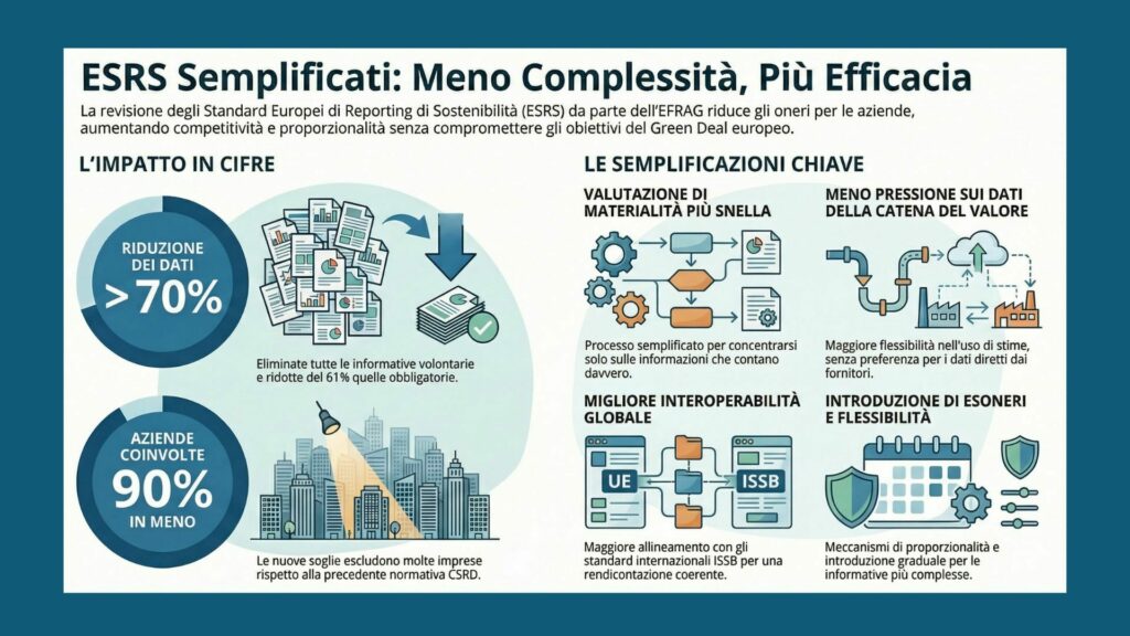 Questa revisione segna un momento cruciale nel panorama normativo europeo e punta a un approccio più pragmatico alla sostenibilità, concentrato su ciò che è davvero materiale e utile per gli stakeholder.